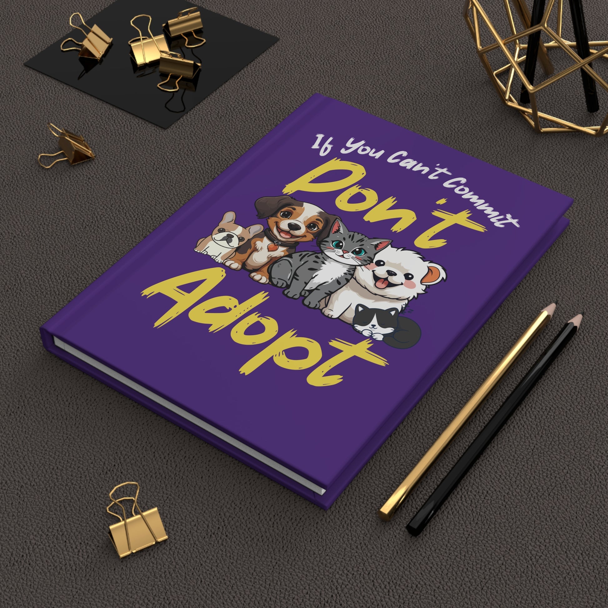 "If You Can't Commit Don't Adopt" Cute Rescue Pets Hardcover Notebook