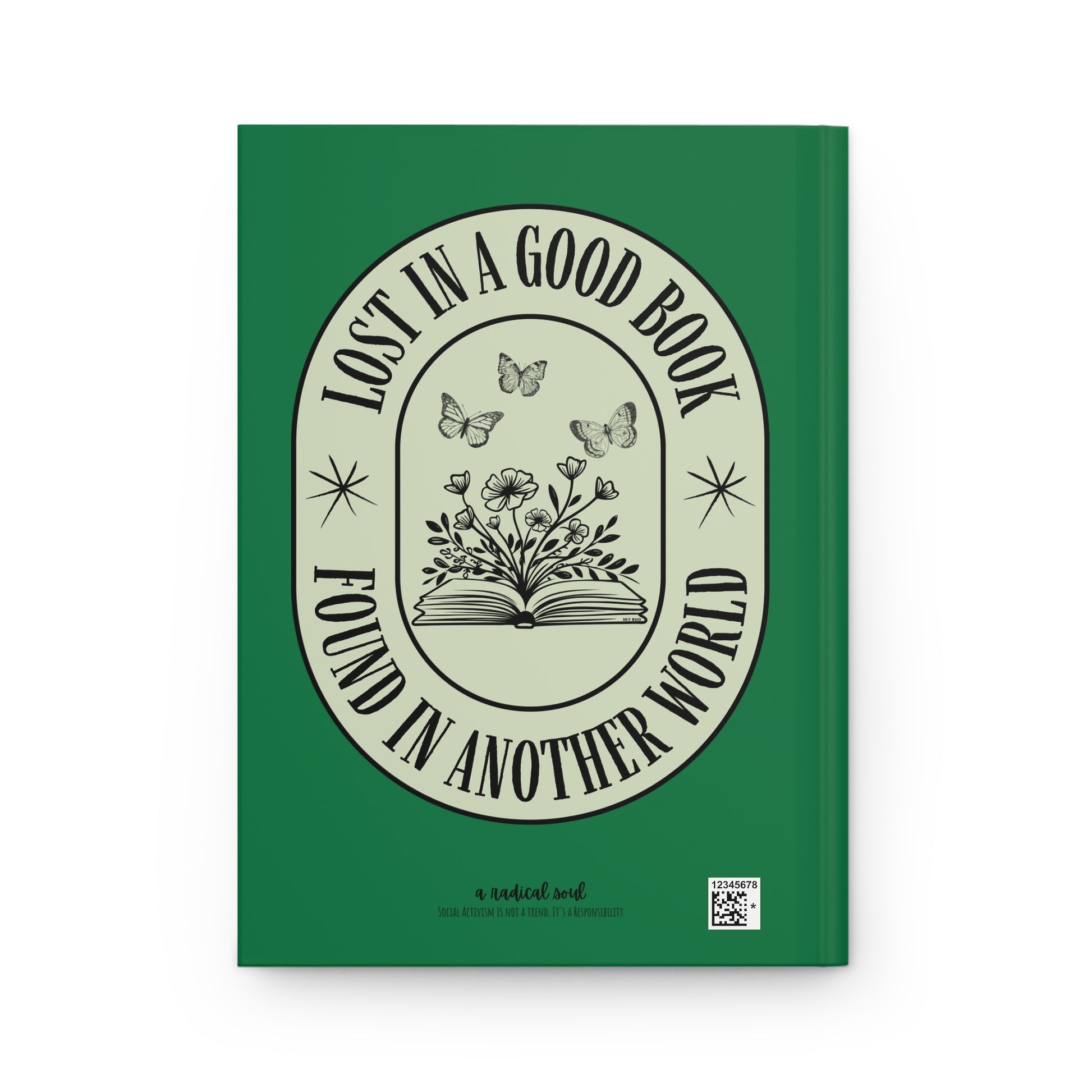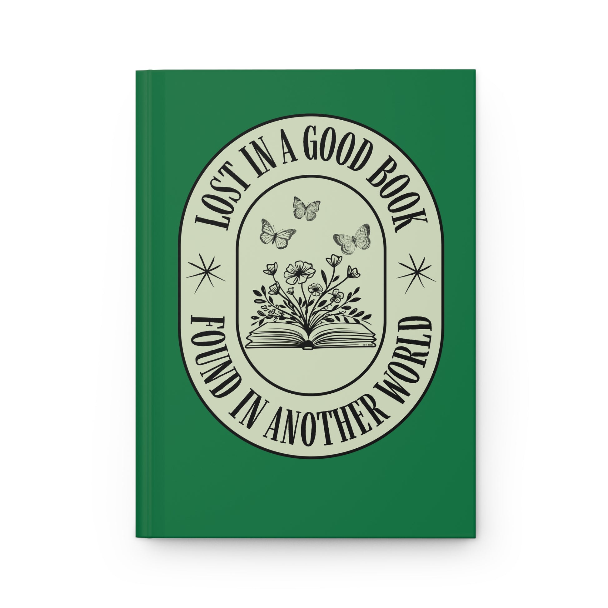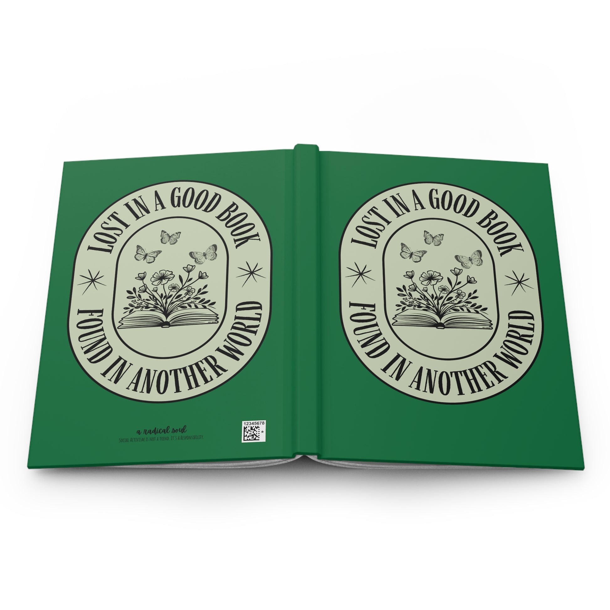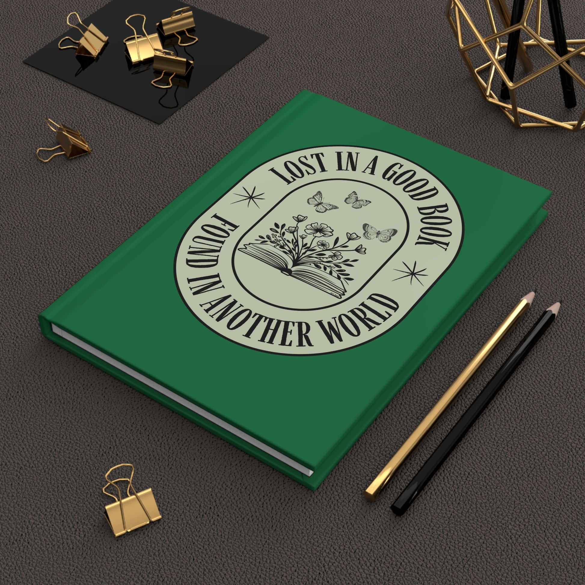 This personal journal opens like a quiet door to other worlds. It is a hardcover, lined notebook celebrating the magic of getting swept away by a great story. Featuring a deep green cover and the whimsical title “Lost in a Good Book, Found in Another World,” it’s the perfect companion for bookworms who live with one foot in reality and one foot in their favorite fictional realm. Ideal for journaling, reading notes, or capturing the sparks of your next big idea.